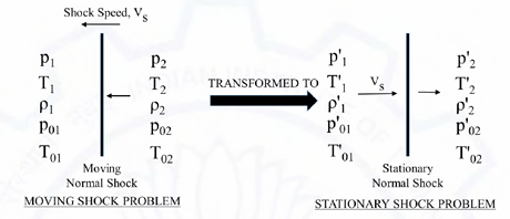 A shock moving into a stationary gas can be transformed to a stationary shock by a change in reference frame, as shown in the figure. Which of the following is/are true relating the flow properties in the two reference frames?