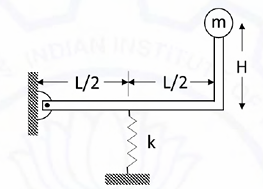 A rigid massless rod pinned at one end has a mass m attached to its other end. The rod is supported by a linear spring of stiffness k as shown in the figure. The natural frequency of this system is: _______.