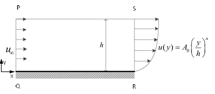 Consider steady, two-dimensional, incompressible flow over a non-porous flat plate as shown in the figure. For the control volume PQRS, the speed, u∞, at section PQ is uniform and the speed at section RS is given by u(y) = A0(y/h)n, where n is a positive integer. The value of A0 for which the flow through section PS will vanish is: