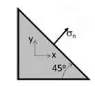 The normal stress, σn, on a plane inclined 45° as shown in the figure is _______ MPa. (round off to the nearest integer)