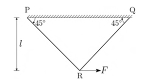 A horizontal load F is applied at point R on a two-member truss, as shown in the figure. Both the members are prismatic with cross-sectional area, A0, and made of the same material with Young's modulus E. The horizontal displacement of point R is: