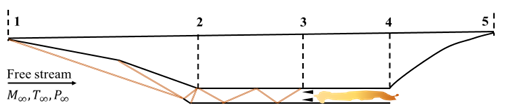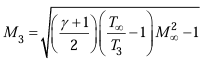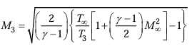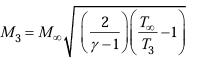 A scramjet engine features an intake, isolator, combustor, and a nozzle, as shown in the schematic. Station 3 indicates the combustor entry point. Assume stagnation enthalpy to be constant between Stations 1 and 3, and air to be a calorically perfect gas with specific heat ratio γ. Select the correct expression for Mach number M3 at the inlet to the combustor from the options given.