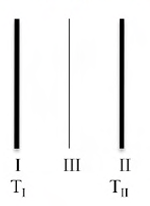Two infinitely large parallel plates (I and II) are held at temperatures Tβ and Tβ (Tβ > Tβ) respectively, and placed at a distance 2d apart in vacuum. An infinitely large flat radiation shield (III) is placed in parallel in between I and II. The emissivities of all the plates are equal. The ratio of the steady state radiative heat fluxes with and without the shield is:
