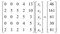 A set of simultaneous linear algebraic equations is represented in a matrix form as shown below.