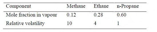 The vapor phase composition and relative volatilities (with respect to n-propane) on an ideal tray of a distillation column are Component Mole fraction in vapour Relative volatility