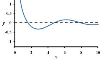 The figure which represents y = sin x/ x for x > 0 (x in radians) is