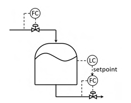 Consider the tank level control system shown in the figure, where the cross-sectional area of the tank is A. Assume perfect flow controllers (FC). The level controller (LC) is proportional-integral (PI). For an integral time, τ, the level controller gain, KI, is tuned for critical damping. The value of KI is ________ (rounded off to the nearest integer).