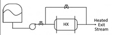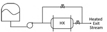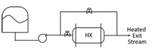 Liquid flowing through a heat exchanger (HX) is heated. A bypass stream is provided to control the temperature of the heated exit stream. From the given plumbing options, the one that provides the most effective temperature control for large disturbances while avoiding vaporization in the heat exchanger is