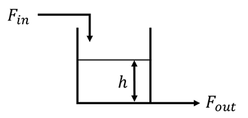 A liquid surge tank has Fin and Fout as the inlet and outlet flow rates respectively, as shown in the figure below. Fout is proportional to the square root of the liquid level h. The cross-sectional area of the tank is 20 cm2. Density of the liquid is constant everywhere in the system. At steady state, Fin = Fout = 10 cm3s−1 and h = 16 cm. The variation of h with Fin is approximated as a first order transfer function. Which one of the following is the CORRECT value of the time constant (in seconds) of this system?