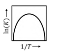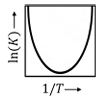 For a reversible endothermic chemical reaction with constant heat of reaction over the operating temperature range, 𝐾 is the thermodynamic equilibrium constant. Which one of the following figures shows the CORRECT dependence of 𝐾 on temperature 𝑇?
