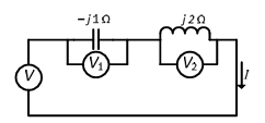 Three moving iron type voltmeters are connected as shown below. Voltmeter readings are V, V1, and V2, as indicated. The correct relation among the voltmeter readings is: