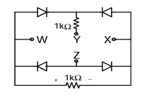 A voltage 1000 sin ωt Volts is applied across YZ. Assuming ideal diodes, the voltage measured across WX in Volts, is