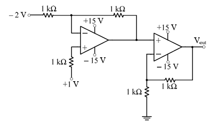 In the circuit shown below the op-amps are ideal. Then Vout in Volts is