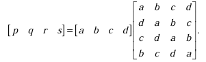 The DFT of a vector [a b c d] is the vector [α β γ δ]. Consider the product