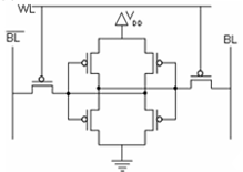 If WL is the Word Line and BL the Bit Line, an SRAM cell is shown in