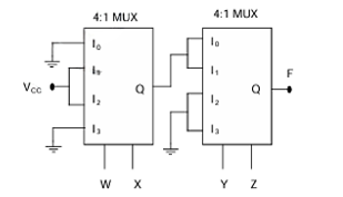 In the circuit shown, W and Y are MSBs of the control inputs. The output F is given by