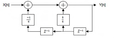 For the discrete-time system shown in the figure, the poles of the system transfer function are located at