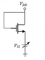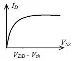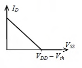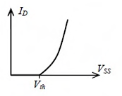 For the NMOSFET in the circuit shown, the threshold voltage is Vth, where Vth > 0. The source voltage VSS is varied from 0 to VDD. Neglecting the channel length modulation, the drain current ID as a function of VSS is represented by