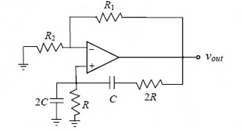 The circuit shown in the figure has an ideal op-amp. The oscillation frequency and the condition to sustain the oscillations, respectively, are