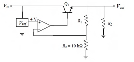 For the voltage regulator circuit shown, the input voltage (Vin) is 20 V ± 20% and the regulated output voltage (Vout) is 10 V. Assume the opamp to be ideal. For a load RL drawing 200 mA, the maximum power dissipation in Q1 (in Watts) is __________.