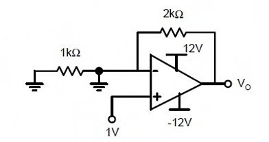 Assuming that the opamp in the circuit shown below is ideal, the output voltage V0 (in volts) is __________.