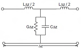 A coaxial cable is made of two brass conductors. The spacing between the conductors is filled with Teflon (εr=2.1, tan δ=0). Which one of the following circuits can represent the lumped element model of a small piece of this cable having length Δz?
