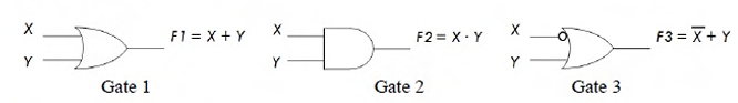 A universal logic gate can implement any Boolean function by connecting sufficient number of them appropriately. Three gates are shown.