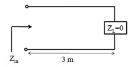 Consider the 3 m long lossless air-filled transmission line shown in the figure. It has a characteristic impedance of 120π Ω, is terminated by a short circuit, and is excited with a frequency of 37.5 MHz. What is the nature of the input impedance (Zin)?