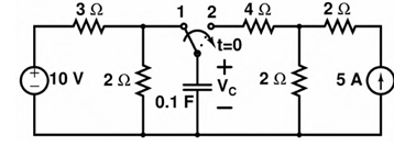 The switch has been in position 1 for a long time and abruptly changes to position 2 at t=0.