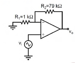 The amplifier circuit shown in the figure is implemented using a compensated operational amplifier (op-amp), and has an open-loop voltage gain. A0=105V/V and an open-loop cut-off frequency, fc=8 Hz The voltage gain of the amplifier at 15 kHz. in V/V, is