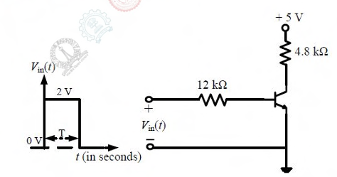 In the figure shown, the npn transistor acts as a switch. For the input Vin(t) as shown in the figure, the transistor switches between the cut-off and saturation regions of operation, when T is large.