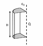 What is the electric flux (∫E·da) through a quarter-cylinder of height H (as shown in the figure) due to an infinitely long line charge along the axis of the cylinder with a charge density of Q?