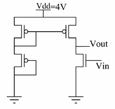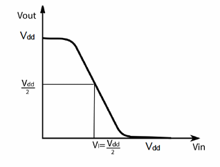 A CMOS inverter, designed to have a mid-point voltage Vi equal to half of Vdd, as shown in the figure, has the following parameters: Vdd=3 V, μnCox=100μA/V2; Vtn=0.7 V for nMOS, μpCox=40μA/V2; |Vtp|=0.9 V for pMOS. The ratio of (W/L)n to (W/L)p is equal to... (rounded off to 3 decimal places).