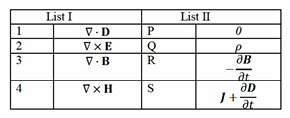 In the table shown, List I and List II, respectively, contain terms appearing on the left-hand side and the right-hand side of Maxwell's equations (in their standard form). Match the left-hand side with the corresponding right-hand side.