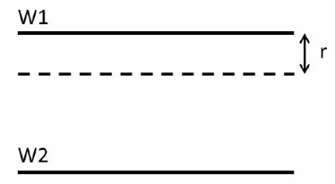 Two identical copper wires W1 and W2, placed in parallel as shown in the figure, carry currents I and 2I, respectively, in opposite directions. If the two wires are separated by a distance of 4r, then the magnitude of the magnetic field B between the wires at a distance r from W1 is