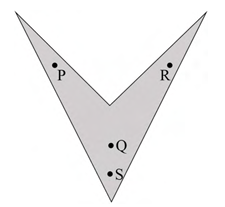 An art gallery engages a security guard to ensure that the items displayed are protected. The diagram below represents the plan of the gallery where the boundary walls are opaque. The location the security guard posted is identified such that all the inner space (shaded region in the plan) of the gallery is within the line of sight of the security guard.