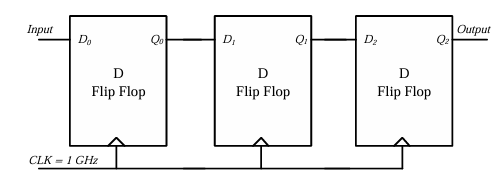 The synchronous sequential circuit shown below works at a clock frequency of 1 GHz. The throughput, in Mbits/s, and the latency, in ns, respectively, are