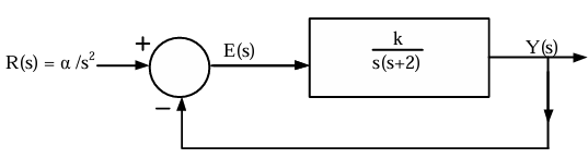 A closed loop system is shown in the figure where k>0 and α>0. The steady state error due to a ramp input (R(s) = α/s2) is given by