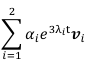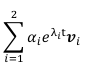 Suppose λ1 and λ2 are two distinct eigenvalues of A and v1 and v2 are the corresponding eigenvectors. For constants α1 and α2, the solution, x(t), of the state equation is