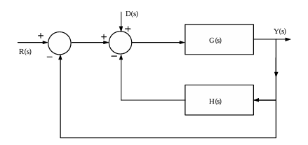 In the following block diagram, R(s) and D(s) are two inputs. The output Y(s) is expressed as Y(s) = G1(s)R(s) + G2(s)D(s). G1(s) and G2(s) are given by