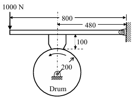 A drum brake is shown in the figure. The drum is rotating in anticlockwise direction. The coefficient of friction between drum and shoe is 0.2. The dimensions shown in the figure are in mm. The braking torque (in N.m) for the brake shoe is ________.