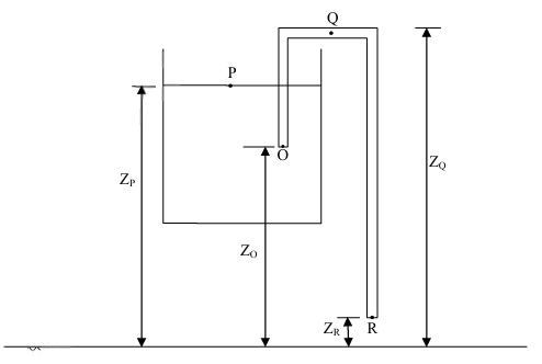 A siphon is used to drain water from a large tank as shown in the figure below. Assume that the level of water is maintained constant. Ignore frictional effect due to viscosity and losses at entry and exit. At the exit of the siphon, the velocity of water is