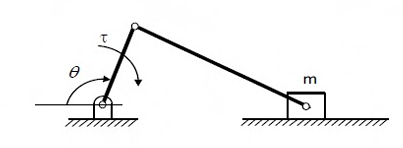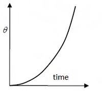 Consider a slider crank mechanism with nonzero masses and inertia. A constant torque τ is applied on the crank as shown in the figure. Which of the following plots best resembles variation of crank angle, θ, versus time