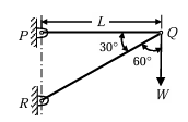 A two-member truss PQR is supporting a load W. The axial forces in members PQ and QR are respectively