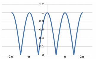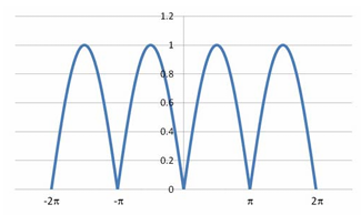 Which of the following curves represents the function y = ln(|e[|sin(|x|)|]|) for |x| < 2π? Here, x represents the abscissa and y represents the ordinate.