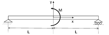 A simply supported beam of length 2L is subjected to a moment M at the mid-point x=0 as shown in the figure. The deflection in the domain 0 ≤ x ≤ L is given by