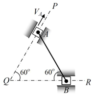 The rod AB, of length 1 m, shown in the figure is connected to two sliders at each end through pins. The sliders can slide along QP and QR. If the velocity VA of the slider at A is 2 m/s, the velocity of the midpoint of the rod at this instant is ________ m/s.