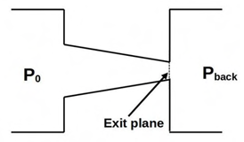 The figure shows a purely convergent nozzle with a steady, inviscid compressible flow of an ideal gas with constant thermophysical properties operating under choked condition. The exit plane shown in the figure is located within the nozzle. If the inlet pressure (P0) is increased while keeping the back pressure (Pback) unchanged, which of the following statements is/are true?