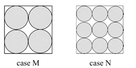 below. In the case M, four circles are shaded in the square sheet and in the case