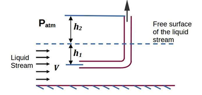 A tube of uniform diameter D is immersed in a steady flowing inviscid liquid stream of velocity V, as shown in the figure. Gravitational acceleration is represented by 𝑔. The volume flow rate through the tube is ______.